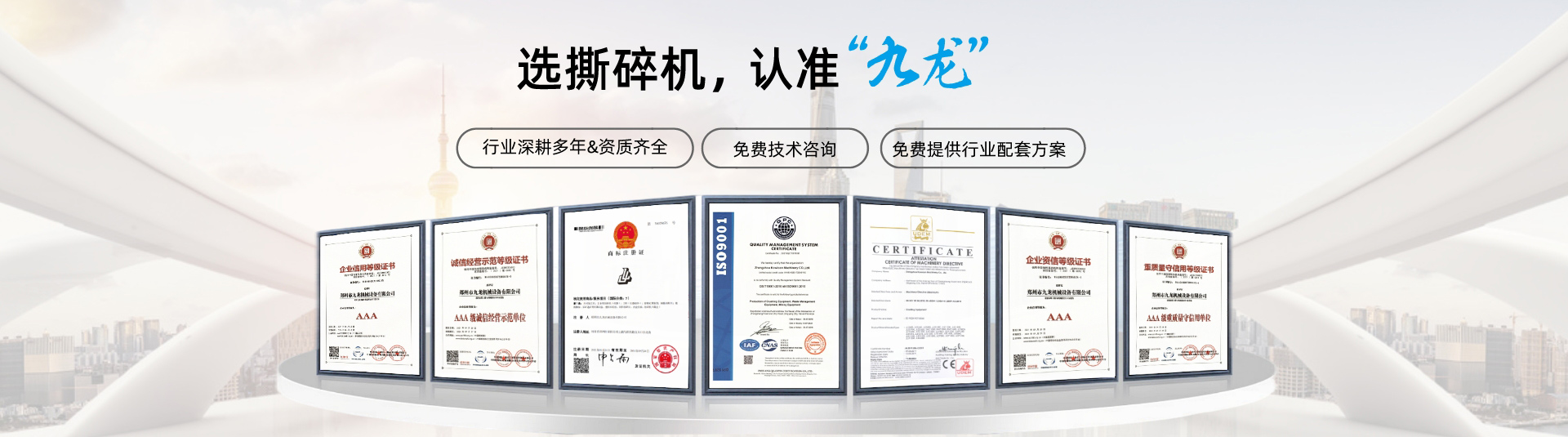 九龍機(jī)械是集科技研制、生產(chǎn)制造、市場(chǎng)開發(fā)、商貿(mào)洽談,從事撕碎行業(yè)和技術(shù)進(jìn)出口業(yè)務(wù)于一體的專業(yè)性實(shí)體生產(chǎn)企業(yè)。九龍公司已通過ISO9001質(zhì)量管理體系認(rèn)證。公司主要生產(chǎn)大型稻草捆撕碎機(jī)、大件垃圾破碎機(jī)、生活垃圾破碎機(jī)、雙軸撕碎機(jī)、金屬撕碎機(jī)、輪胎粉碎設(shè)備等系列大、中型撕碎設(shè)備的企業(yè),九龍公司堅(jiān)持“質(zhì)量興業(yè)”的創(chuàng)業(yè)思想,奉行“用戶滿意”的服務(wù)宗旨,以“誠(chéng)實(shí)信用,實(shí)事求是“為經(jīng)營(yíng)之本。九龍公司始終堅(jiān)持以質(zhì)量求生存,以創(chuàng)新求發(fā)展,并遵循“對(duì)每一道工序負(fù)責(zé),對(duì)每一臺(tái)產(chǎn)品負(fù)責(zé),對(duì)每一位用戶負(fù)責(zé)的工作態(tài)度,九龍全體工作人員竭誠(chéng)為您服務(wù)。經(jīng)營(yíng)理念——以客戶...